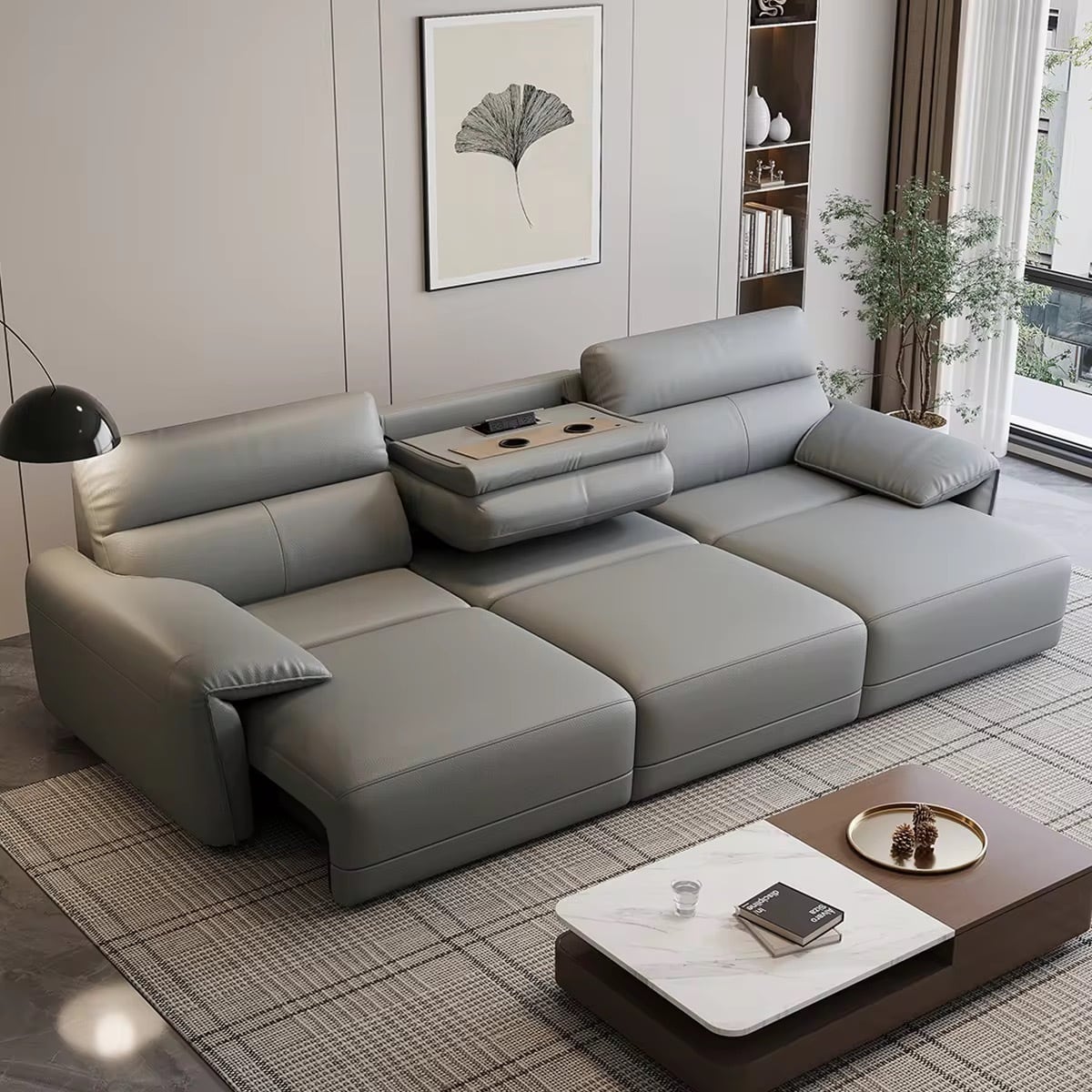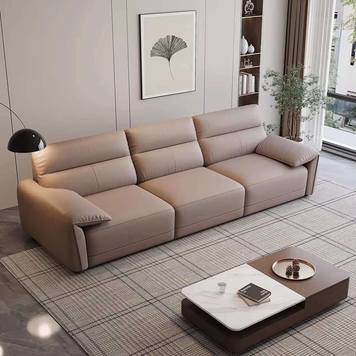 高級レザー仕上げと洗練されたモダンデザインが、リビングを格上げします。